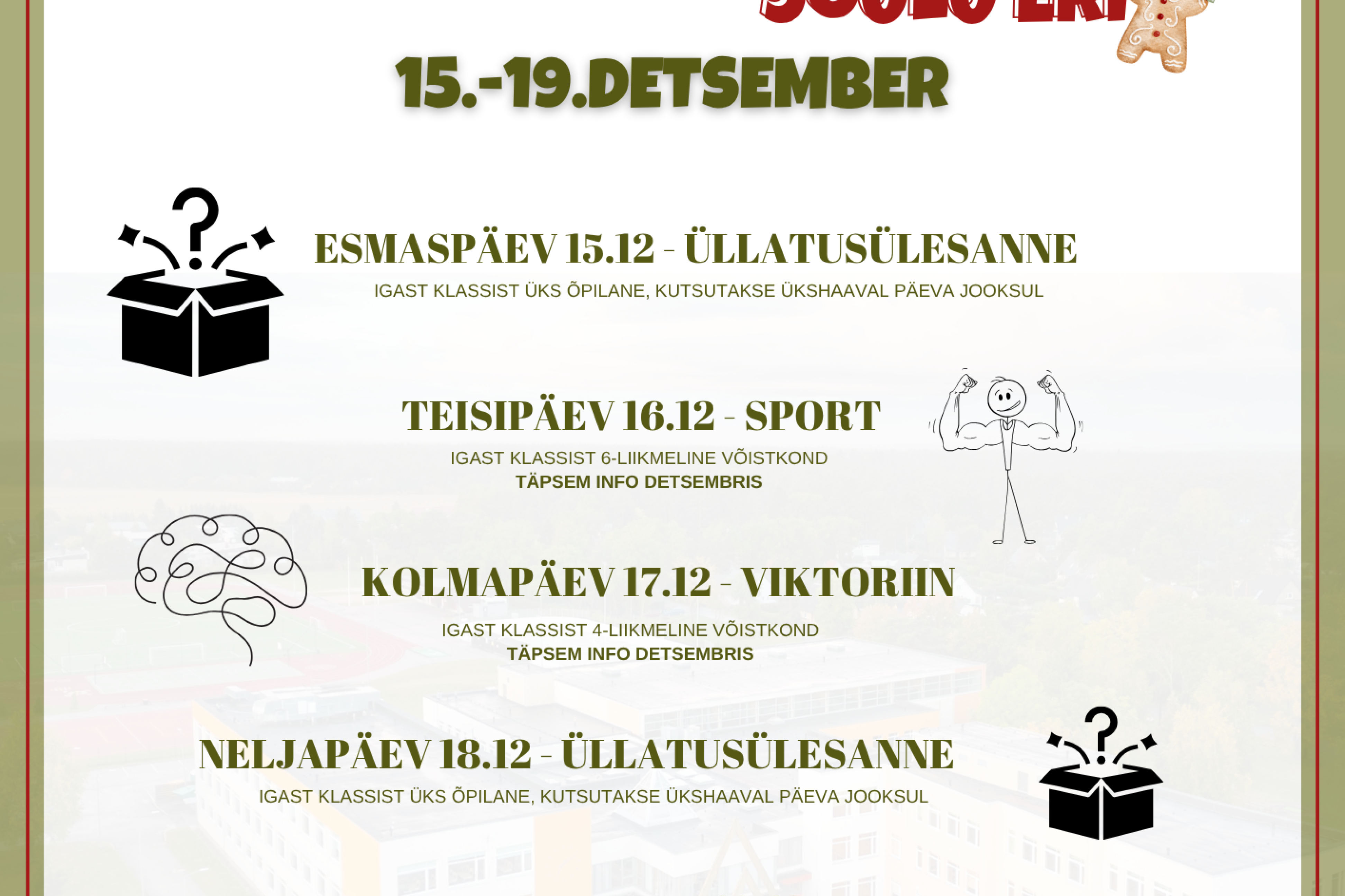 5.-9. klassi õpilased selgitavad välja KooliMängu võitja, võisteldes spordis, viktoriinis, üllatus-ülesannetes ja PLAYBOXI´dega :)
