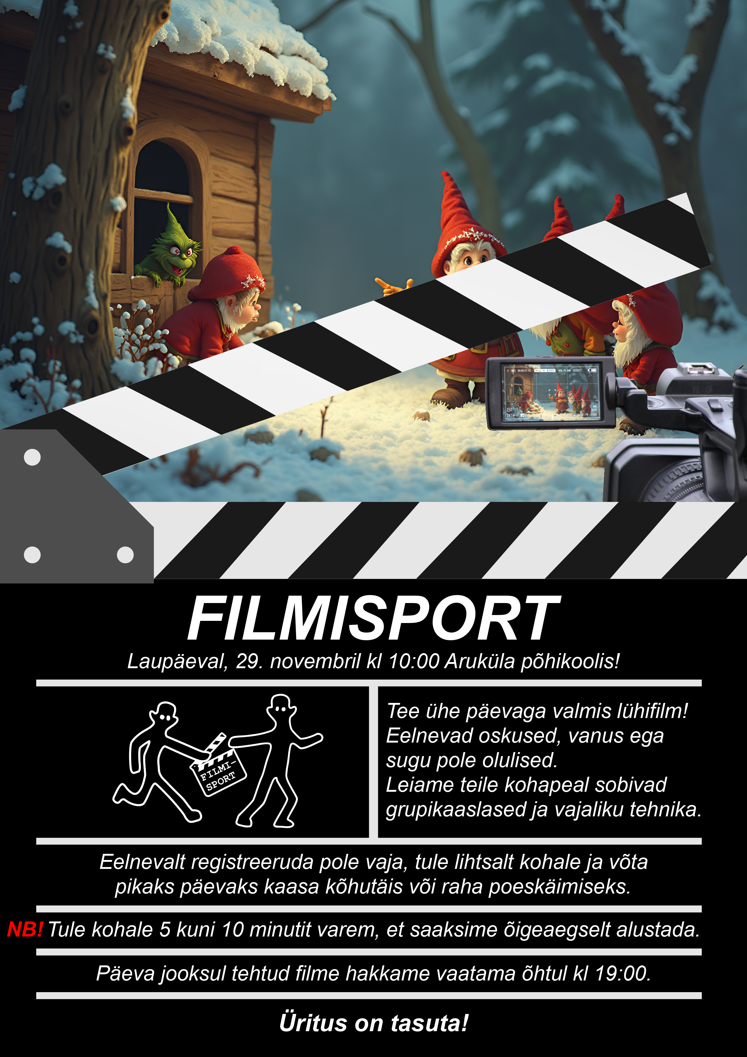 On jälle Filmispordi aeg :)Tule laupäeval kooli ja õpi kuidas teha lühifilmi! Ava foto Viimati muudetud 24.11.2025.