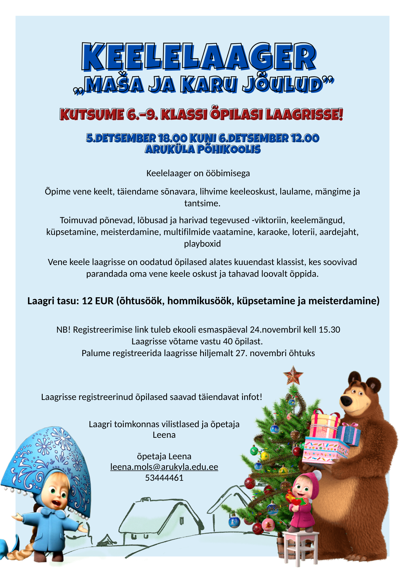 Ööbimisega ja täis põnevaid tegevusi keelelaager koolimajas :) Kiirusta ja pane ennast kirja! Ava foto Viimati muudetud 21.11.2025.